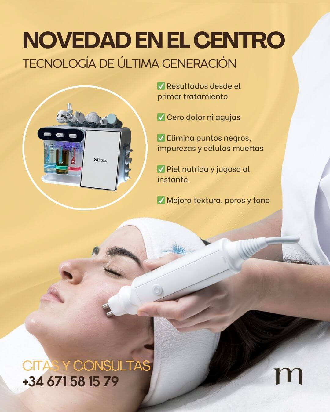 ND Hydra Balance es un tratamiento médico-estético no invasivo e indoloro que combina hidrodermoabrasión, ultrasonidos y oxigenoterapia para ofrecer resultados inmediatos y sin tiempo de recuperación.